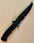 Késharc biztonságos elsajátításához való, kemény anyagból készült gyakorlókés.
