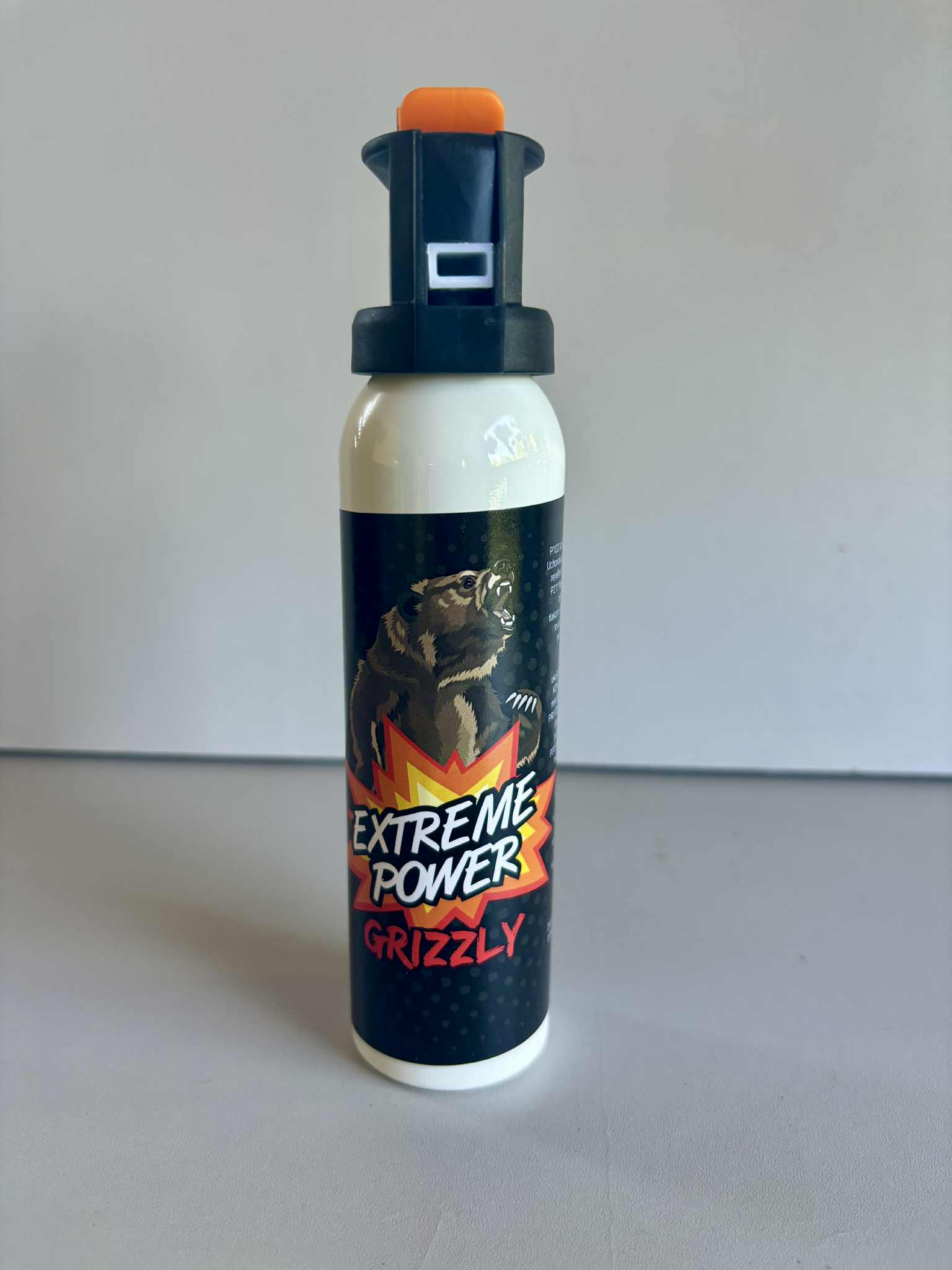 Nagy hatékonyságú könnyező Grizzly Extreme Power védelmi spray, amely állatok ( MEDVE ) elleni védekezésre alkalmas.