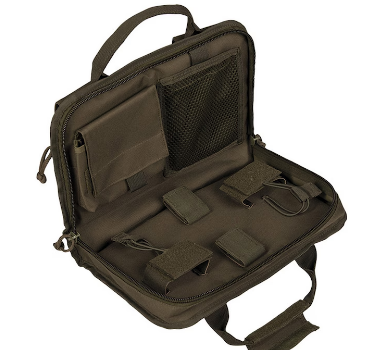 Poliészterből készült táska, amely pisztolyok szállítására szolgál. Kényelmes cipzárral zárható. A táska oldalai EVA habbal vannak töltve, ami lehetővé teszi a hordozható termék további védelmét a karcolásoktól és a kárpitozástól.