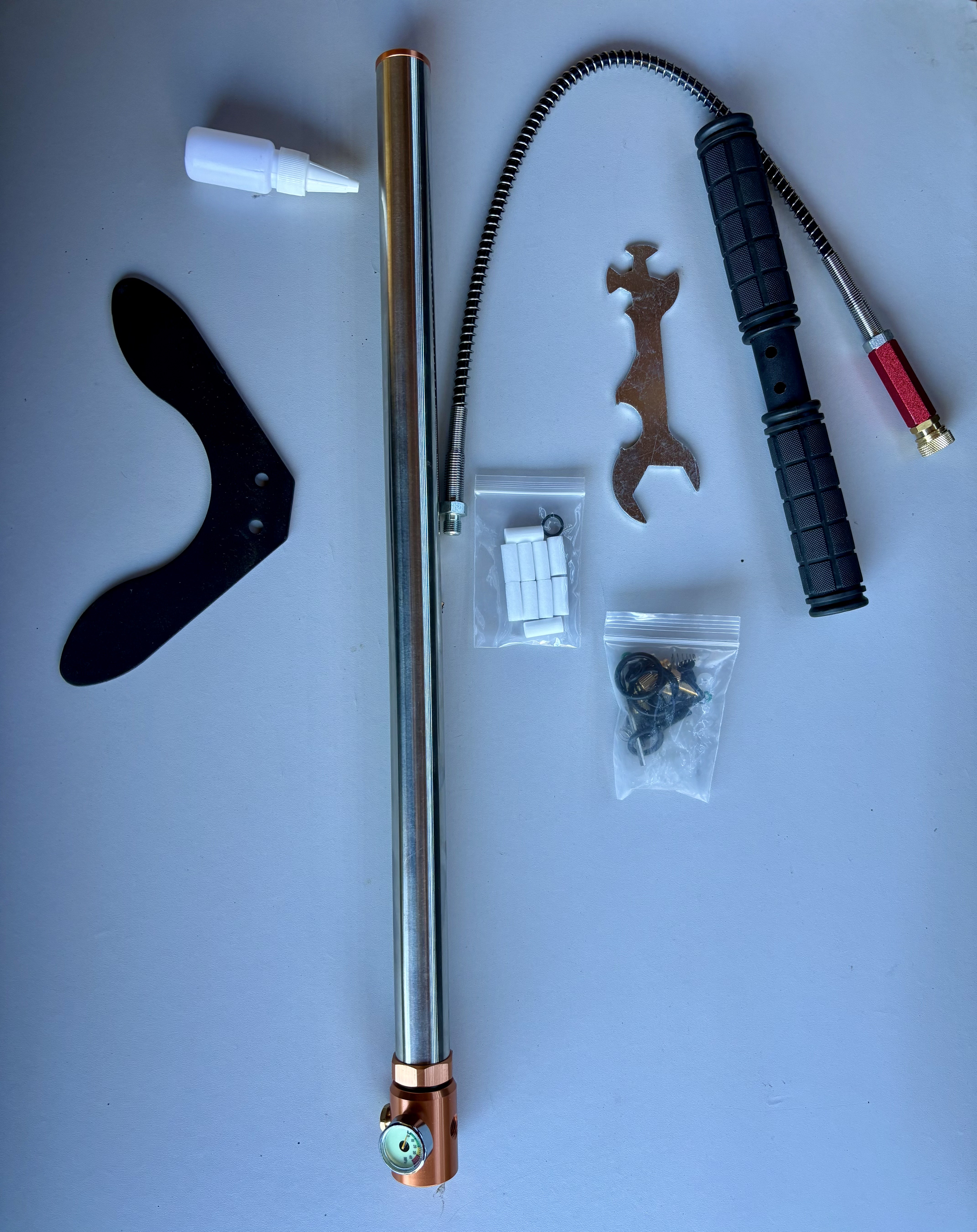 A sűrített levegővel működő PCP fegyverek légtartályának feltöltésére szolgál. A mérőóra 40MPa-ig skálázott, optimális tartomány 30MPa-ig.