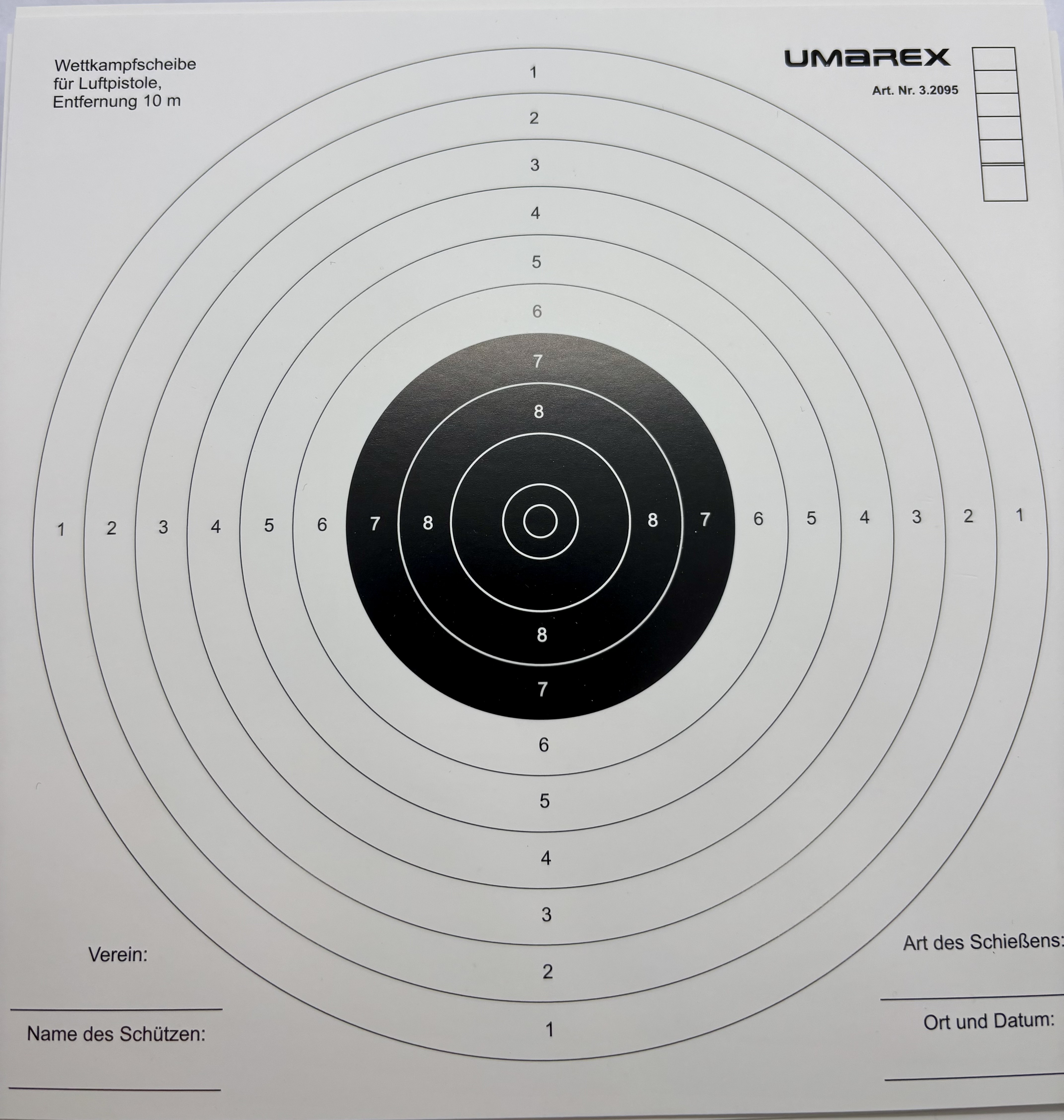 lőlap 17x17 cm méretben.
